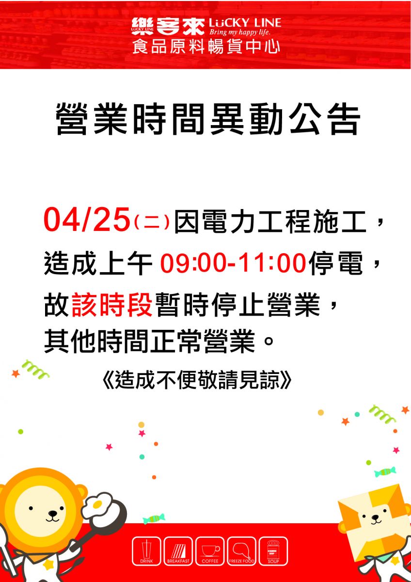 04/25 賣場停電公告